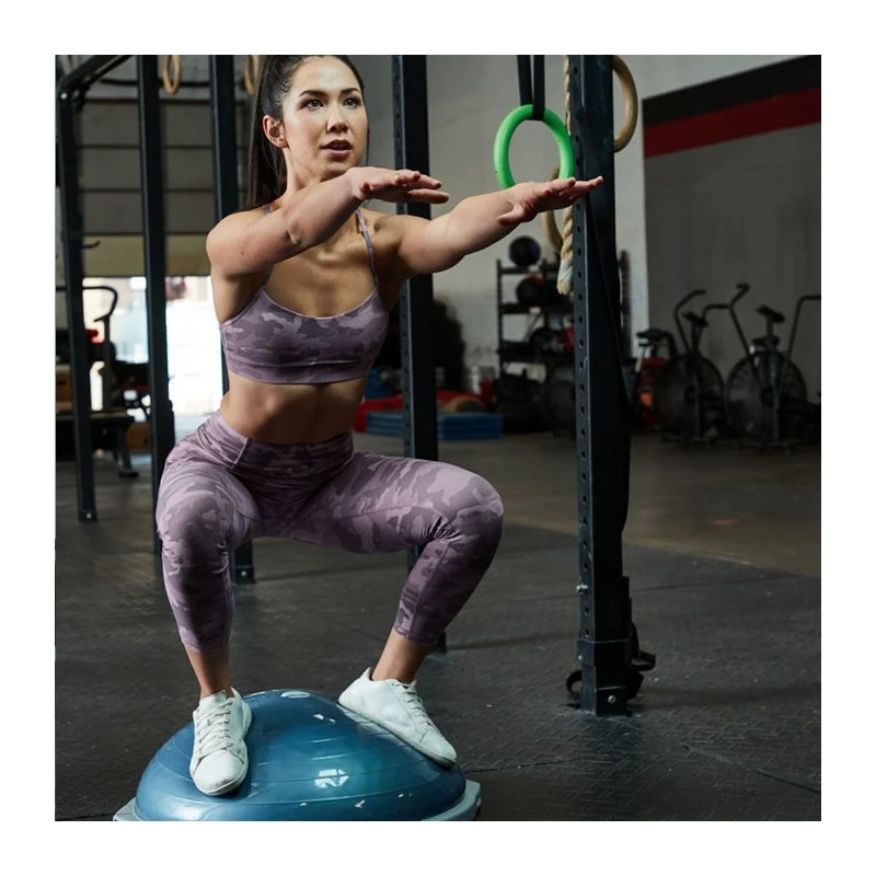 Après un échauffement normal, on fait travailler les cuisses et fessiers sur le BOSU® Pro. Les muscles stabilisateurs de la cuisse sont sollicités. On enchaîne avec des pompes, le déséquilibre oblige chaque coté du corps à travailler de manière identique, ce qui est rarement le cas en appui sur le sol.