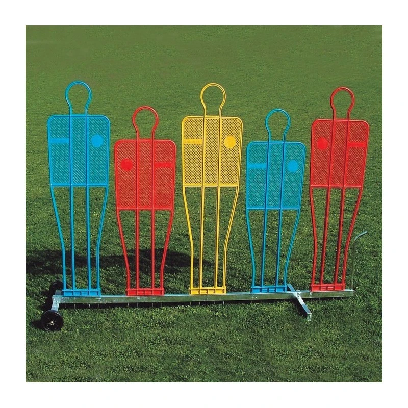 Chariot en acier galvanisĂ© avec roues pouvant supporter 5 mannequins d’entrainement pro de taille 180cm ou 160cm.