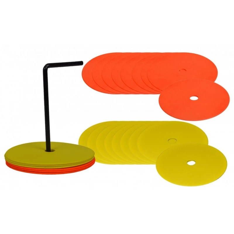 Lot de 24 disques de repérage (12 jaunes + 12 oranges) antidérapants, parfaitement adaptés aux entrainements en salle ou sur terrain synthétique..
