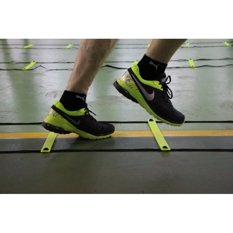 S’installe très rapidement sur votre terrain. Elle est idĂ©ale pour travailler la coordination et l’agilitĂ© en toute sĂ©curitĂ©. Les intervalles de cette Ă©chelle de rythme peuvent ĂŞtre ajustĂ©s en fonction du travail recherchĂ© et peut s’utiliser autant en salle qu’en extĂ©rieur.