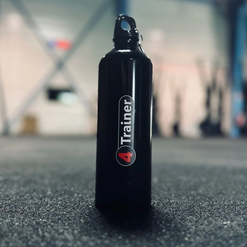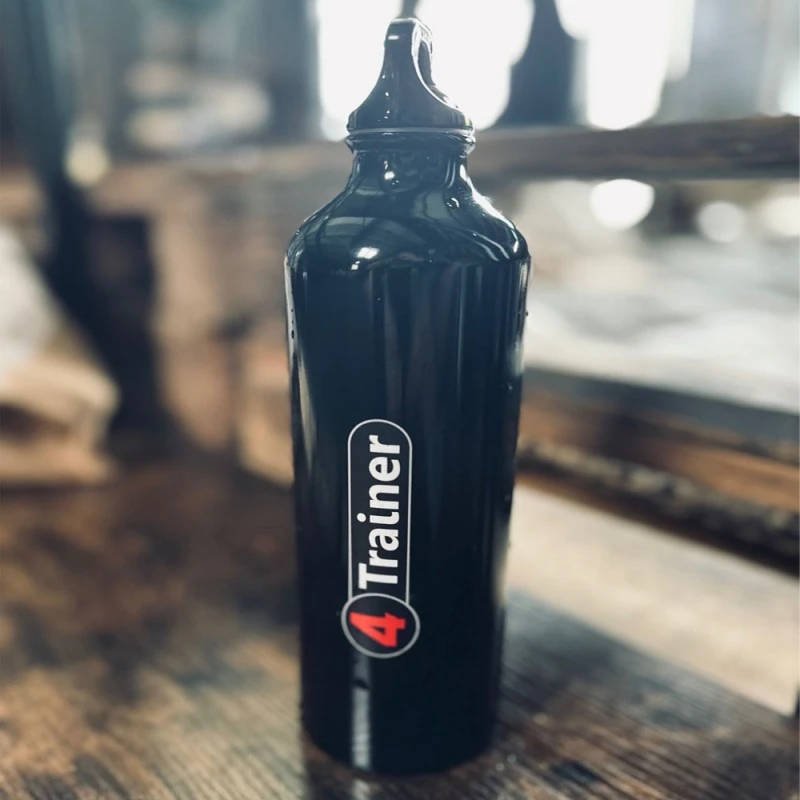Cette gourde est disponible en noir brillant, avec le logo 4Trainer.
