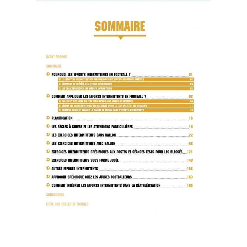 Partant de ces constats, cet ouvrage a pour principal objectif d’apporter le plus humblement possible un état des lieux pratique de l’utilisation des efforts intermittents dans le football moderne.