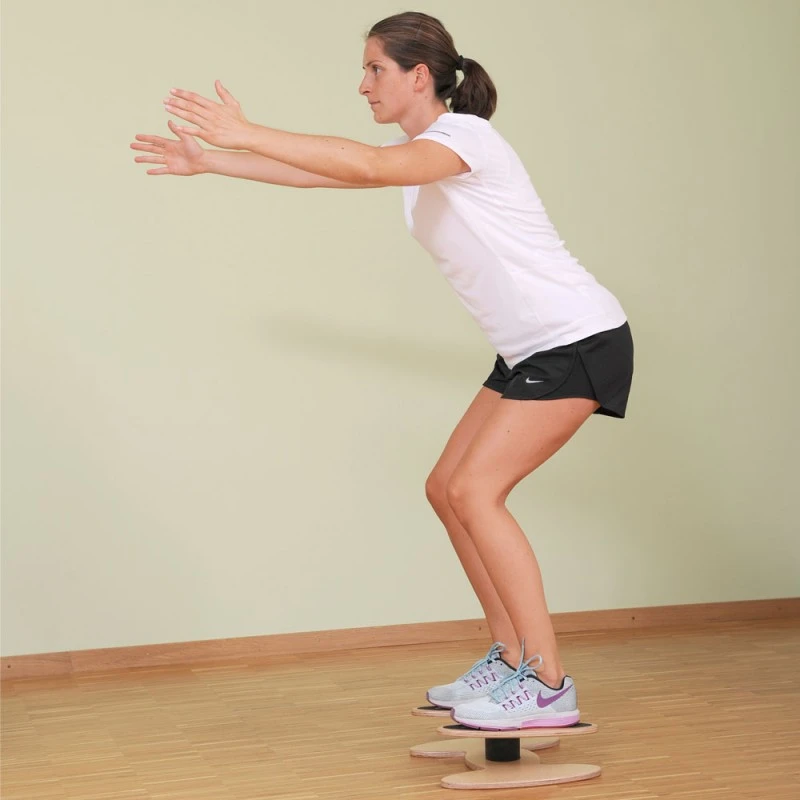 Ce haut d’équilibre sportif avec un positionnement de pied prédéterminé offre suffisamment d’espace pour bouger. Cela favorise la mobilité des chevilles et des hanches. L’équilibre et la stabilisation du torse sont testés et entraînés de manière optimale. Grâce à la conception spéciale, le mouvement et la charge uniformes sur les deux pieds peuvent être contrôlés visiblement et acoustiquement.