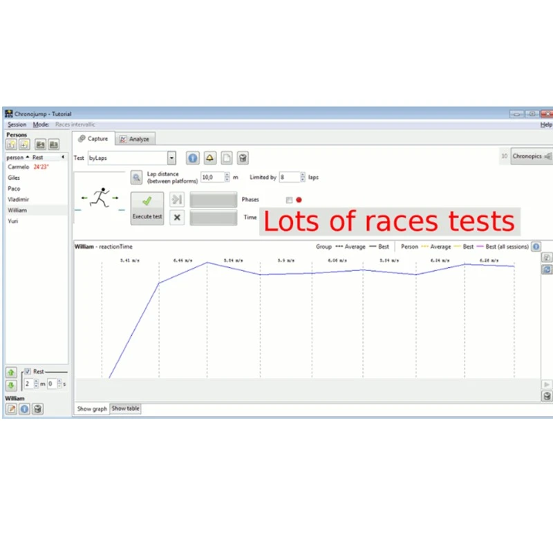 – Choisissez le protocole de test utilisé ( Squat Jump, Contre Mouvement Jump, Drop jump.. ).