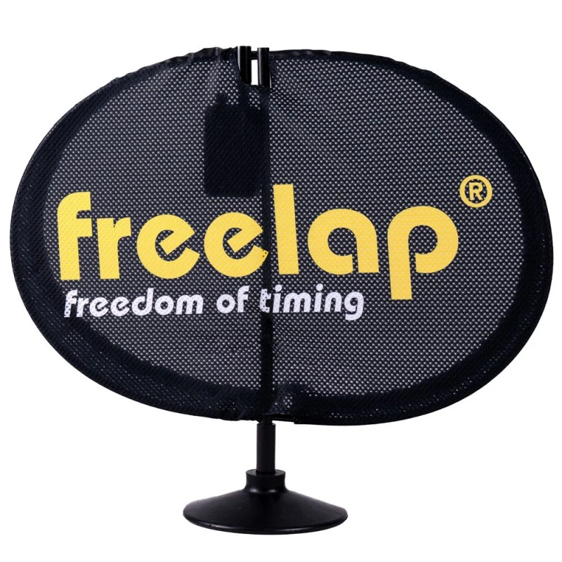 • 2. : Placez-la 2m derrière la ligne de départ (logo Freelap face au départ). Pour chronométrer sur 8 couloirs, placez-la entre les couloirs n°4 et n°5.