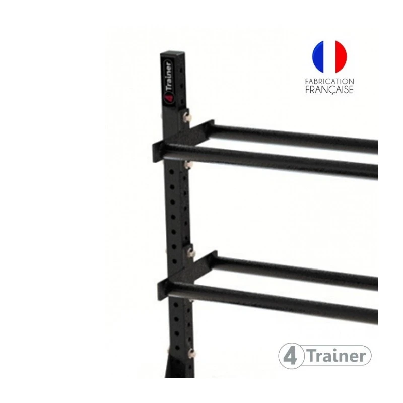 Des étagères plateau sont également disponibles en option pour poser les kettlebells, ou les haltères.