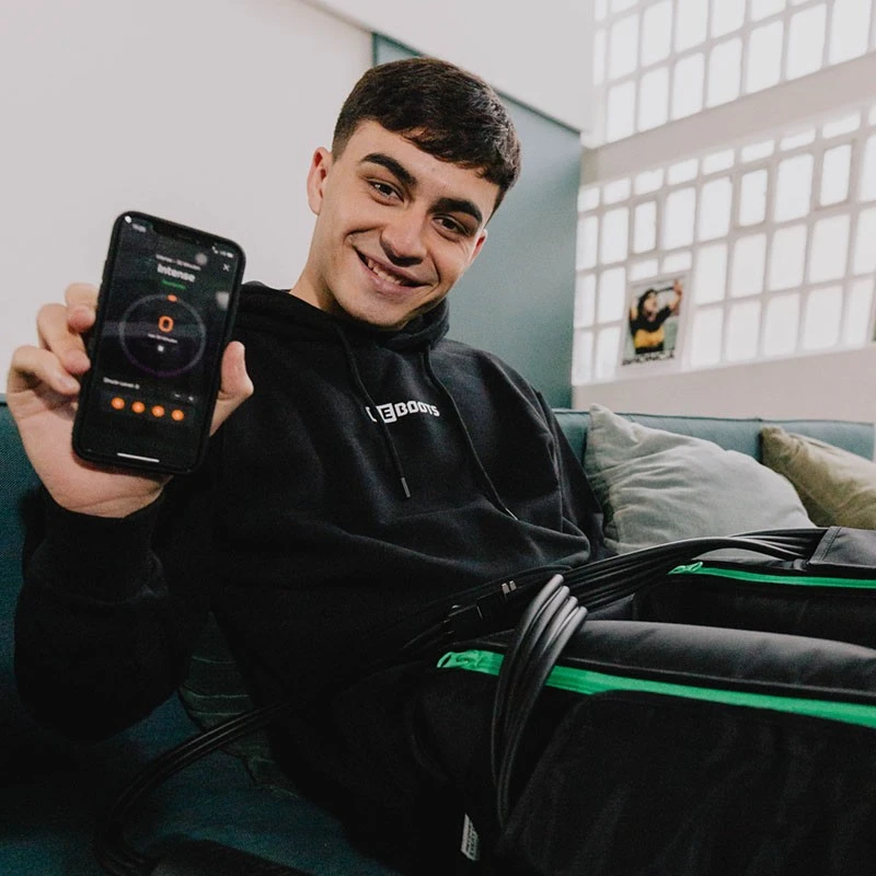 Le massage mécanique des bottes de récupération ONE contribue à une phase de récupération qui améliore les performances, en plus des méthodes de récupération active comme une alimentation riche en nutriments ou des exercices d’étirement.