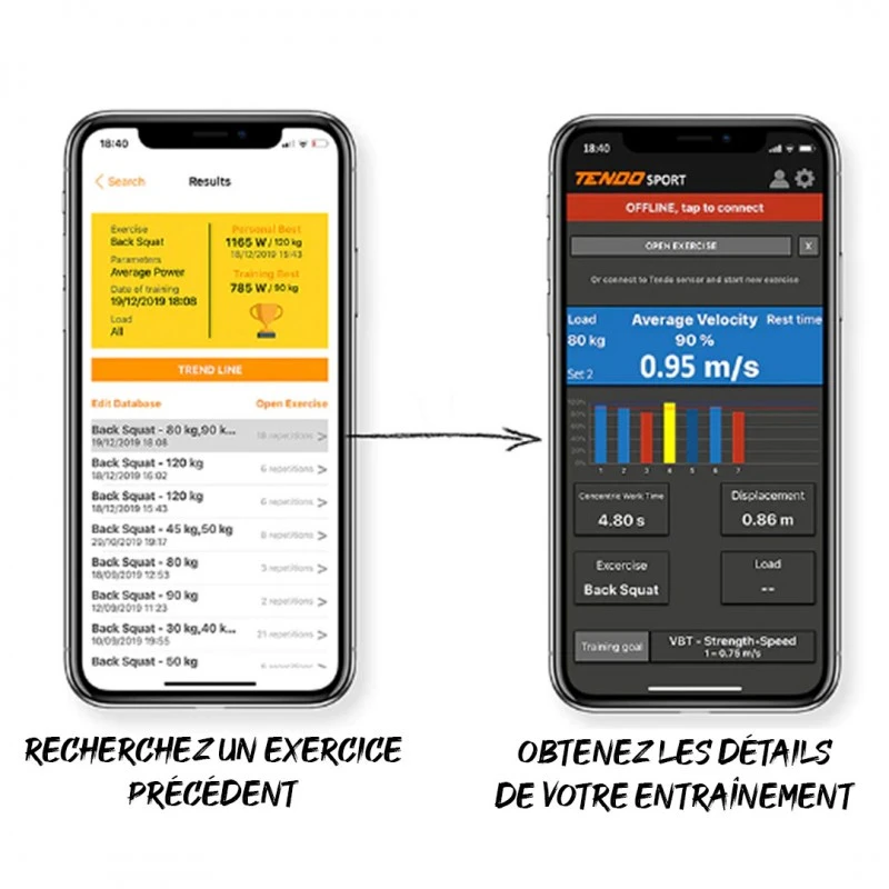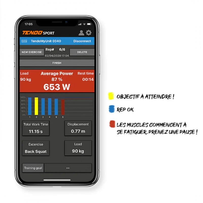 • APPLICATION : MyTENDO iOS uniquement. Accès complet gratuit sans abonnement : commentaires immédiats, collecte de données instantanées, profil de l’utilisateur, suivi des progrès, partage des résultats.