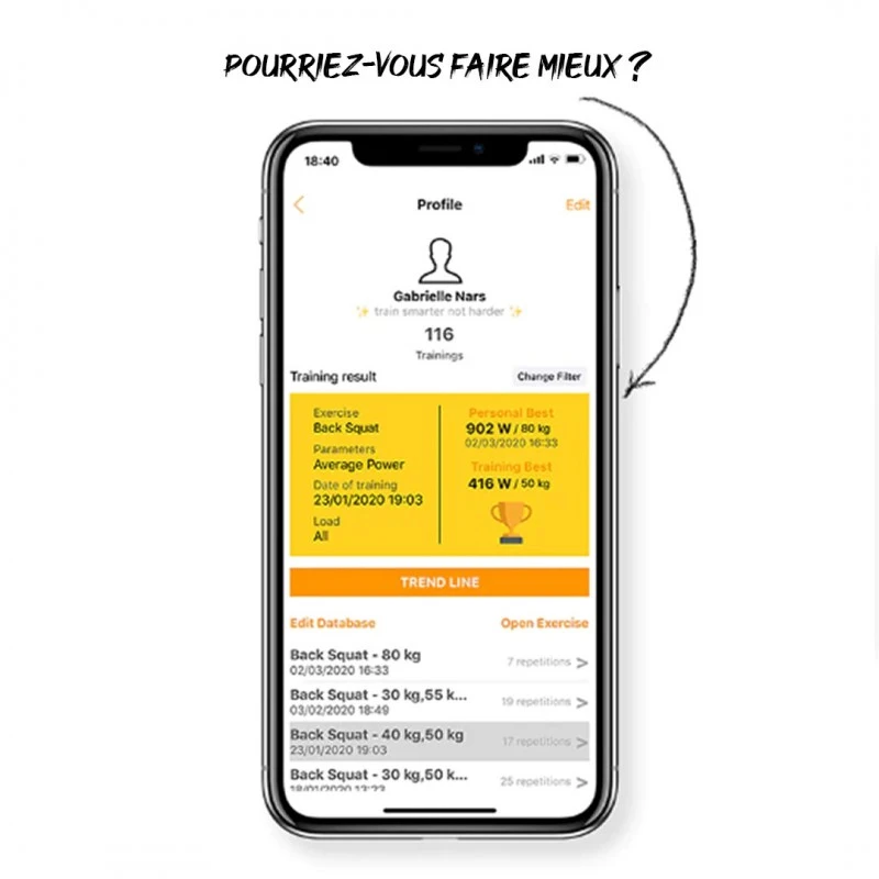 Enregistrez et passez en revue vos performances passées directement sur votre appareil. Créez votre profil individuel et obtenez vos meilleures statistiques personnelles et d’entraînement.