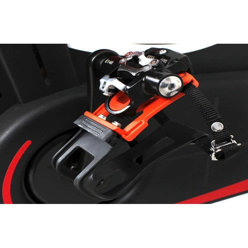 Réglages L’utilisateur se positionne à sa guise grâce aux réglages au millimètre de hauteur et de recul de selle et guidon. Chacun peut ainsi retrouver ses positions idéales. Pédales double faces (SPD (VTT) et Look).